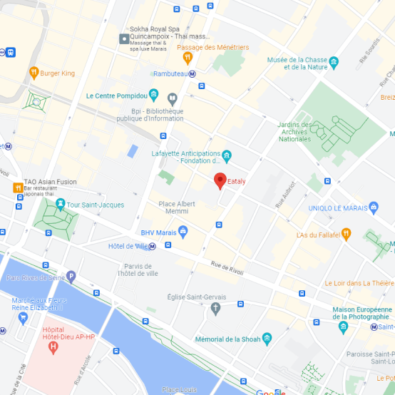 Eataly Paris Marais vous accompagnera également pour l'organisation de vos événements professionnels et personnels : soirée d'entreprise, anniversaire, mariage... Vous pouvez privatiser l'un de nos espaces ou faire appel à notre service traiteur !